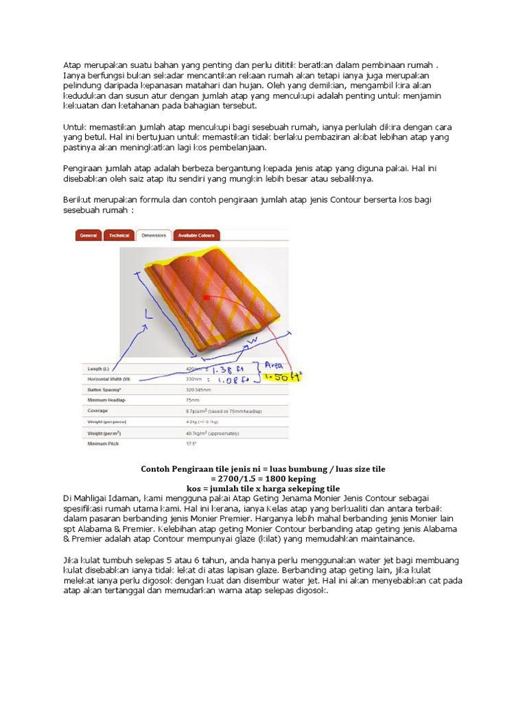 Kos Dan Bahan Binaan Malaysia Harga Genting Tanah Liat